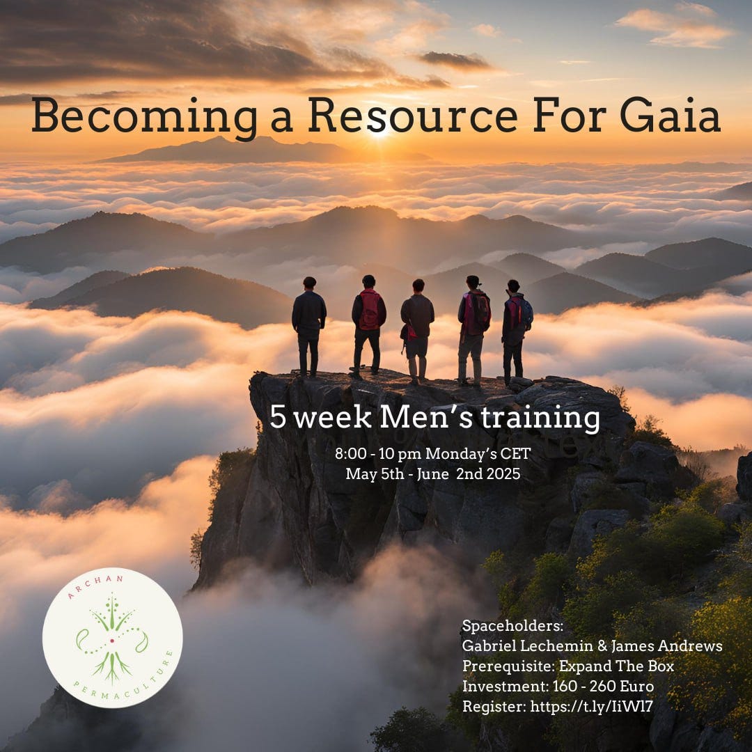 I hold space for Becoming a Resource for Gaïa, for now a training designed for men at the edge of Inner and Outer Permaculture.